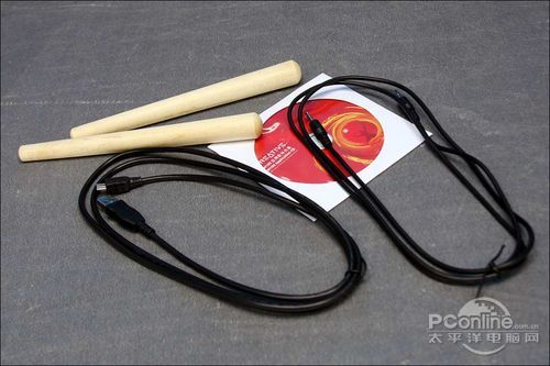 在驱动光盘、线材之外,创新 鼓乐乐还附带了一对鼓槌,给人的感觉更显专业。事实上,用户可以直接用手击打鼓面进行操作,简单直接。