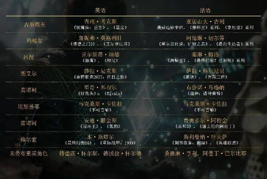 视觉效果上可圈可点,项目组在听觉上更是不惜下了血本。首先是豪华的配音阵容,相信不少玩家瞬间就识别出了玛埃尔的原声——詹妮弗·英格利什,也是《博德之门3》中影心的配音演员。除此之外,几乎每一位配音演员都是明星级别,手中有过数部作品。